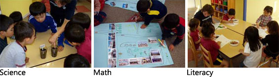 アメリカのスクールで行われている、創造的なアクティビティを体験する幼稚園児クラス。2時間のゆったりとした時間の中で、アート、サイエンス(科学)、マス(算数)などの遊びを通して、創造性や論理的に考える力を伸ばすとともに、自分の考えを自由に表現するジャーナルや、英語の文字と音の関係を学ぶフォニックスで、英語のリタラシィ(読み書き)の基礎を身につけます。また、外国人ティーチャーとの楽しい時間が、英語への好奇心と自信、コミュニケーションの力を飛躍的に伸ばします。